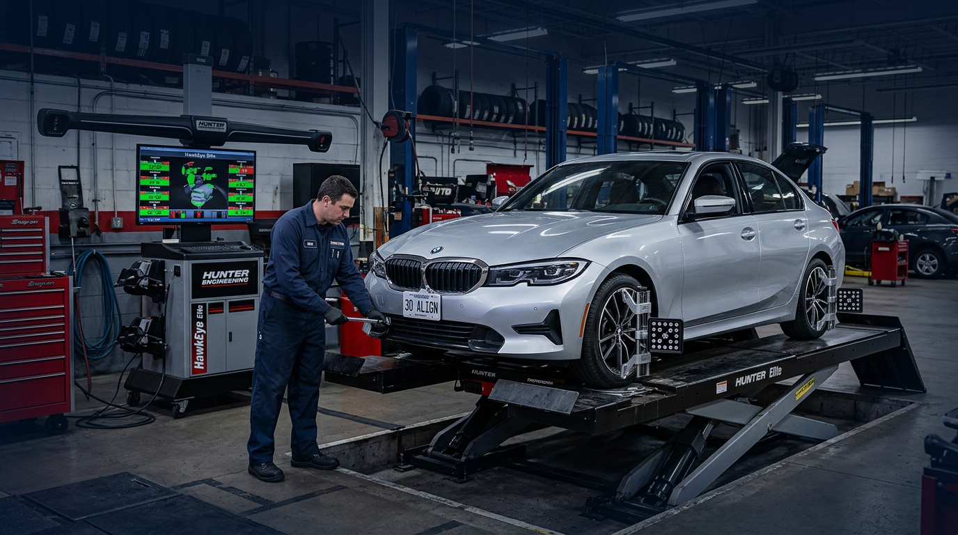 Alignment racks measure and adjust camber, caster, and toe for proper suspension geometry and tire wear. Systems range from laser to 3D imaging. Drive-on racks allow quick vehicle positioning. Alignment services extend tire life and support safe handling—core revenue for auto repair shops.