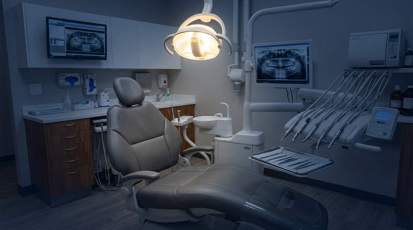 Dental equipment encompasses everything in a modern operatory: patient chairs, delivery units (handpiece systems), curing lights, handpieces, digital intraoral scanners, and CAD/CAM systems like CEREC for same-day restorations. Full operatory buildouts include cabinetry, lighting, and sometimes imaging. Key categories: