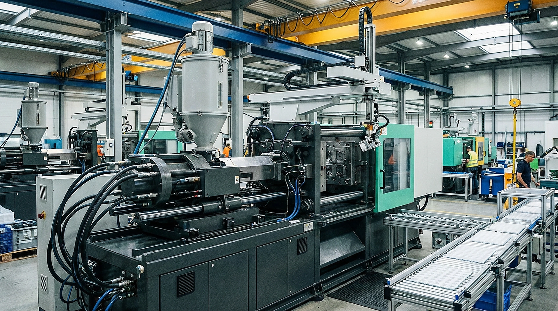 Injection molding machines melt plastic resin and inject it into molds to produce plastic parts. With new machines costing $50,000-$500,000+ depending on clamp tonnage and shot size, paying cash ties up capital you need for molds, materials, and payroll.