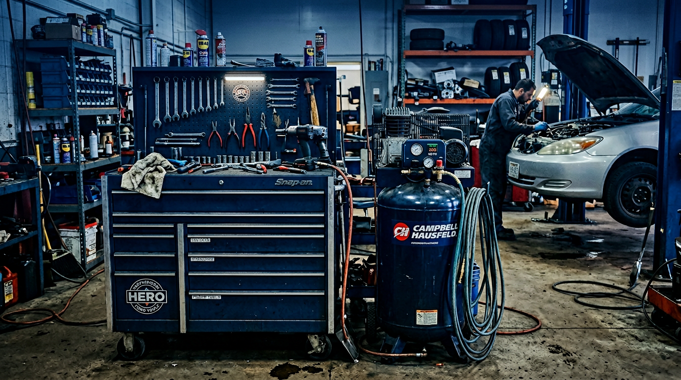 Tool chests $1,000–$15,000+. Air compressors $500–$10,000+. Specialty tool sets $500–$5,000. Full packages $50,000+. Used typically 20–35% less. Many lenders finance used equipment. Calculator.