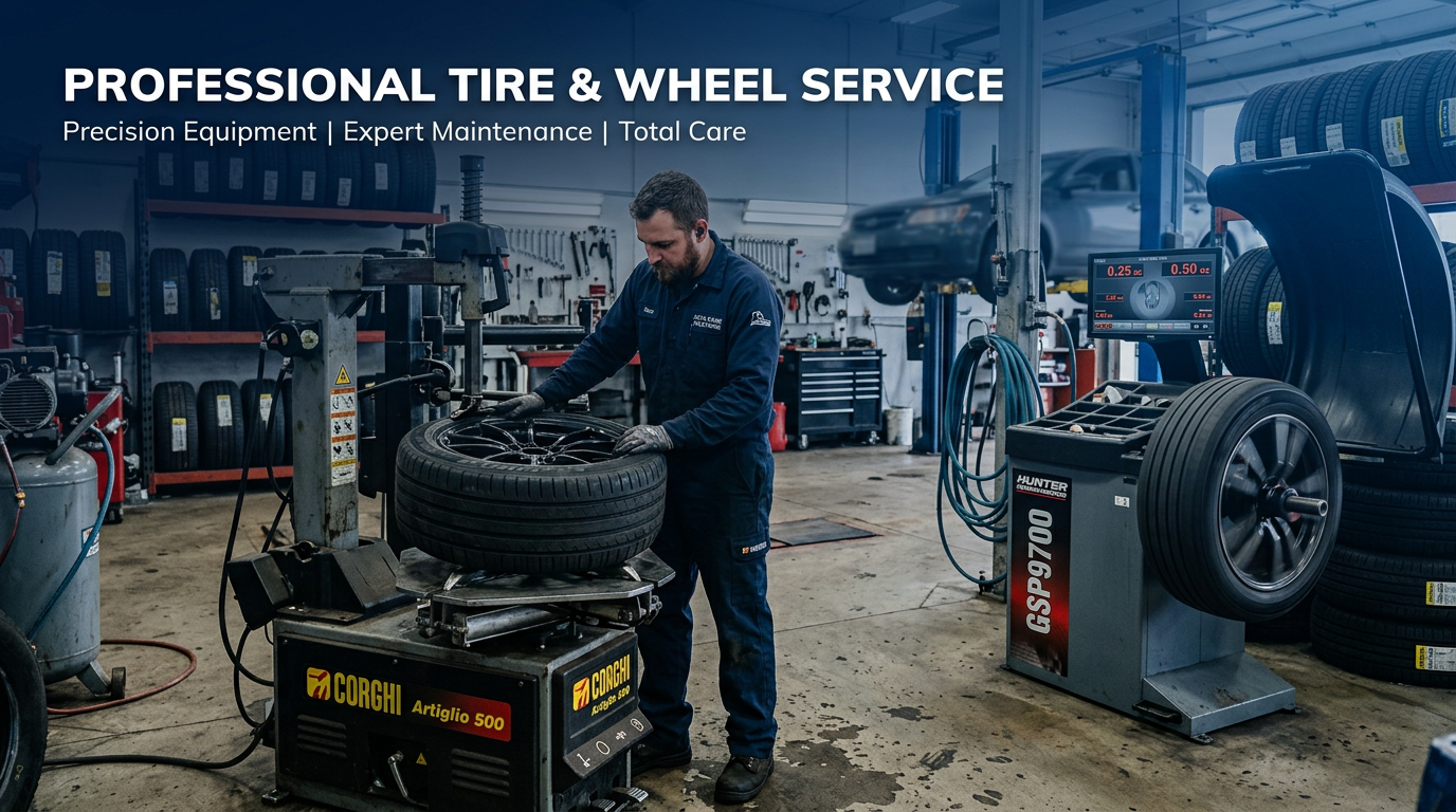 Tire changers mount and dismount tires from rims. Wheel balancers identify and correct imbalance for smooth ride and even wear. Equipment ranges from basic manual units to fully automatic systems. Tire service supports rotations, replacements, and flat repairs—essential revenue for auto repair shops.